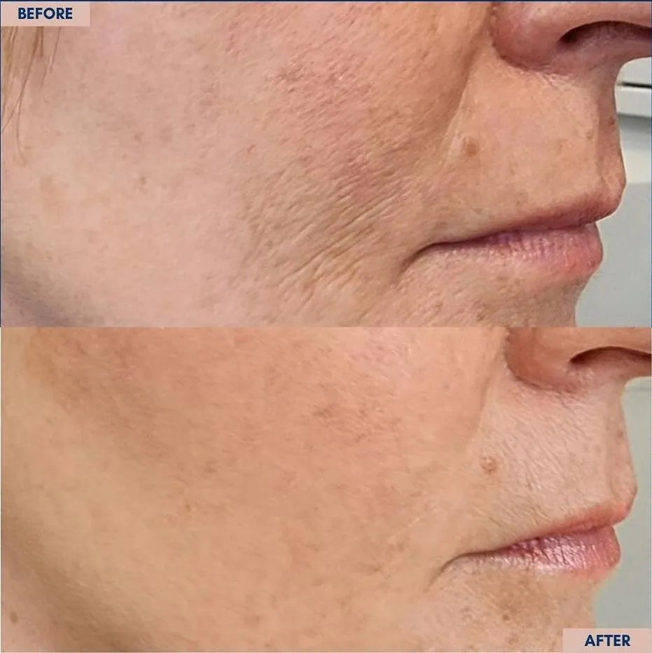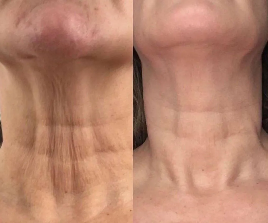 Rimpels en verslapping zijn zichtbaar verminderd. De huid is gladder, voller en steviger.